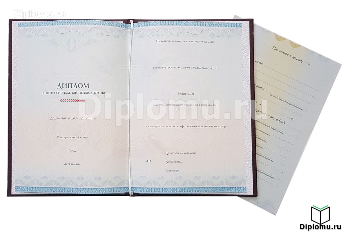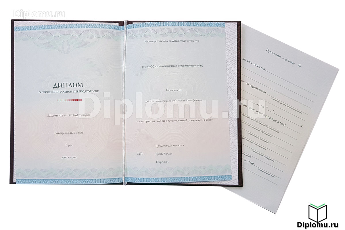 На нашем сайте Вы можете купить диплом о профессиональной переподготовке из любого учебного заведения, где есть соответствующие курсы. Подберём подходящее образовательное учреждение и содержание программы согласно сфере Вашей деятельности. У Вас есть возможность в короткие сроки получить необходимые корочки с бесплатной доставкой по Москве и в другие регионы России; оплата при получении. Работаем качественно, принимаем заказы ежедневно, соблюдаем конфиденциальность. Можем изготовить копию, если у Вас есть свой образец.