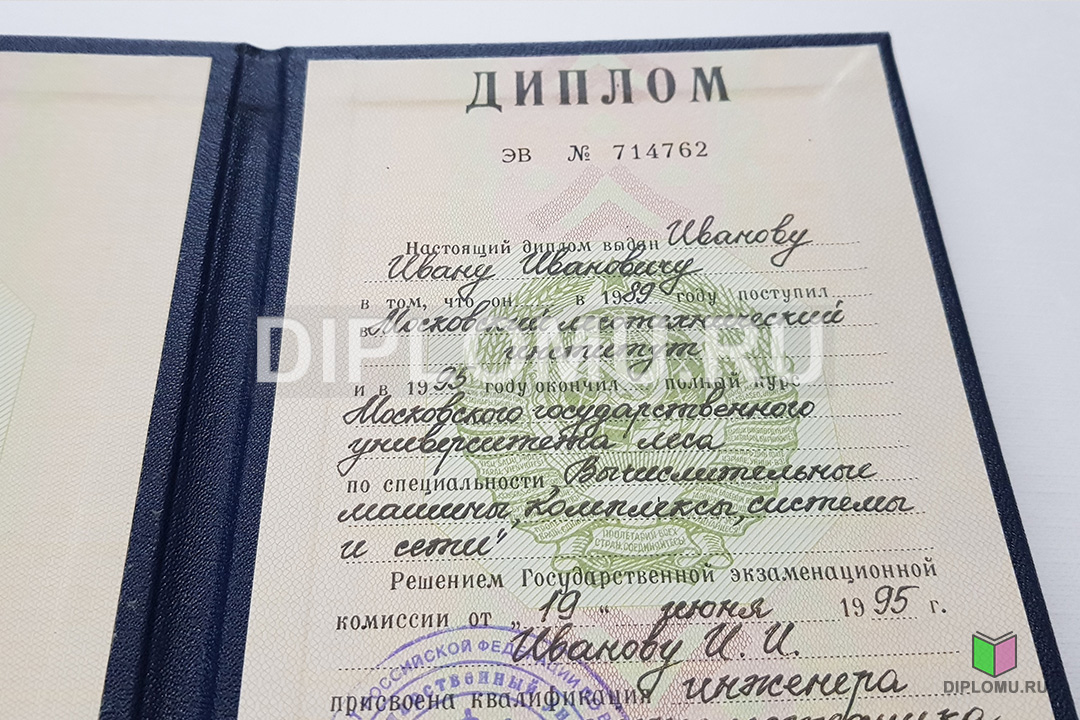 На нашем сайте Вы можете купить диплом ВУЗа СССР о высшем образовании с окончанием института или университета в период с 70-x годов и до 1996 года включительно. До 1991-1993 годов старые дипломы заверялись гербовой печатью СССР (РСФСР), а позднее — печатью РФ с двуглавым орлом. Наши специалисты заполнят диплом по всем правилам, установленным на тот период. Заверяются «мокрыми» печатями и нужными подписями.